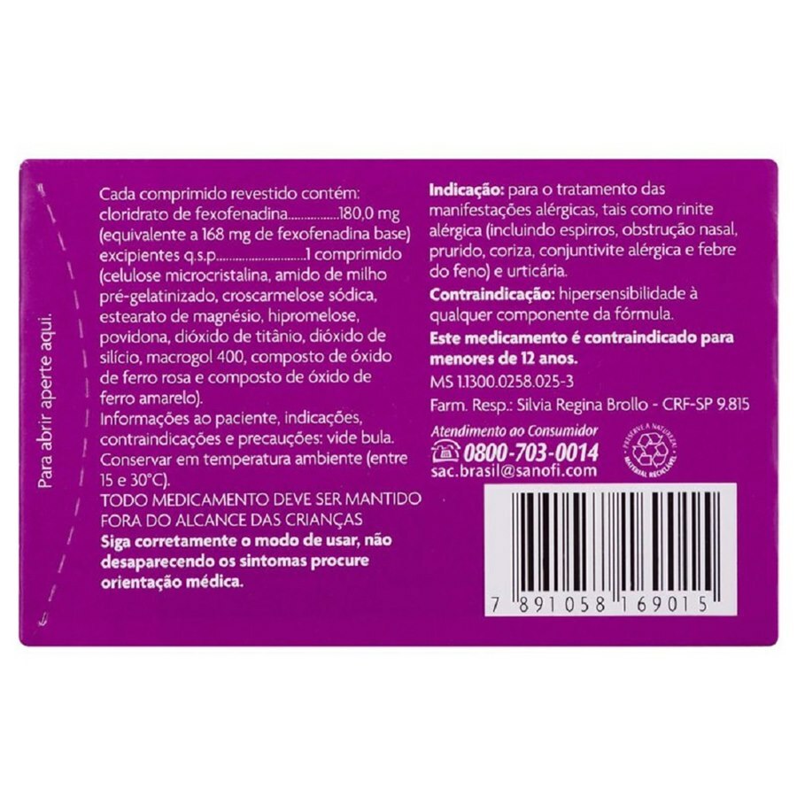 ANTIALÉRGICO ALLEGRA 180MG 10 COMPRIMIDOS É UM MEDICAMENTO. SEU USO PODE